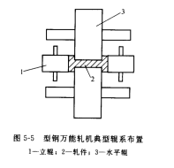 型鋼****軋機的水平輥和垂直輾在同一垂直平面內(nèi),可實現(xiàn)軋件在高度和寬度方向同時軋制,如生產(chǎn)大型工字鋼的專用軋機,其典型輥系布置如圖5-5所示。